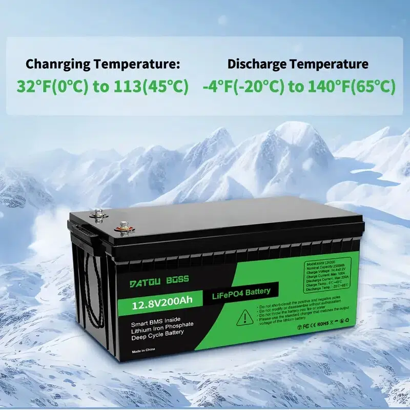 LiFePO4 technology offers a very low self-discharge rate. The Datou BOSS 200Ah lithium battery loses less than 3% per month when idle.