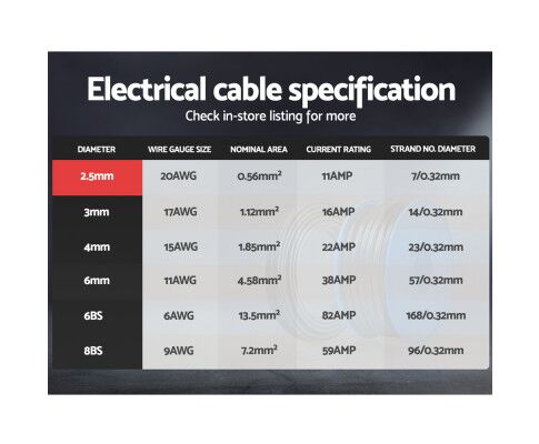 Specifications for 2.5MM Electrical Cable: