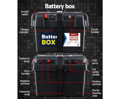 And not to be outdone, the battery box easily fits the battery and together, they can power up a host of 12V devices including camping lights and portable fridges with its cigarette lighter socket as well as mobile phones and tablets with the two USB ports. The box itself can be charged using solar panels or any power source with its quick-connect Anderson plugs.
