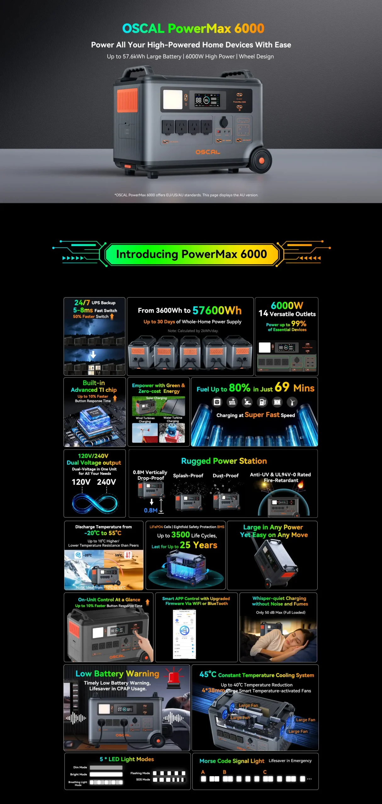 OSCAL PowerMax 6000 Portable Power Station 3600Wh LiFePO4 Pure Sine Wave