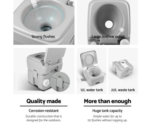 Weisshorn 20L Portable Camp Toilet – Grey Outdoor Camping