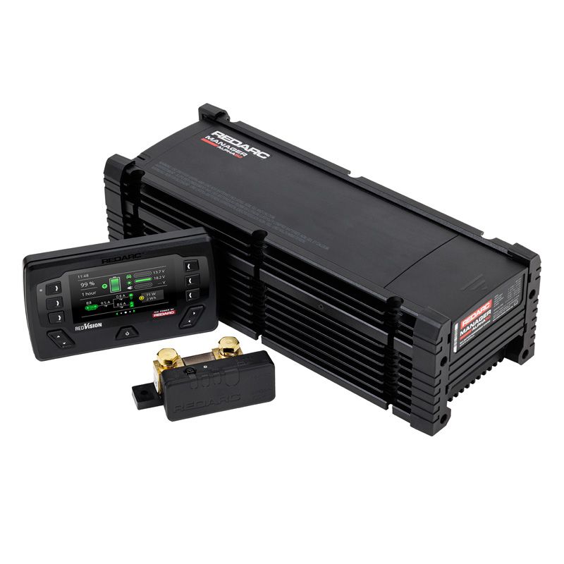 Included is the RedVision display, Smart Battery Monitor and companion app, providing real-time charge and battery level information. The Manager Alpha is the ultimate solution for managing your power needs.