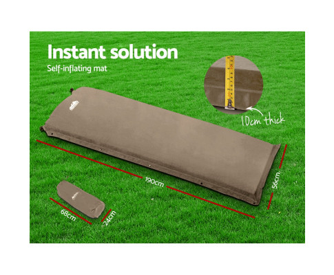Weisshorn Single Self Inflating Mattress Mat Joinable 10CM Thick Colour Grey or Double