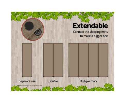 Need more resting surface? You can extend the mat multiple times through this simple and convenient process. Just connect the two mats via the built-in buttons for an enlarged area (Check out our in-store Double Mat listing). And when all is done, just roll up the deflated mat and packed it into the carry bag for your next destination.