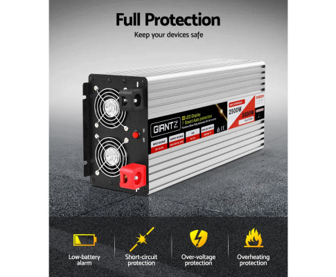 Giantz Solar Inverter 12V to 240V 2500W/5000W Pure Sine Wave Camping Car Boat.