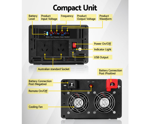 Solar Inverter, if you are looking for ways to power up your devices, hook up with the Giantz Pure Sine Wave Inverter. A Pure Sine Wave Inverter produces a clean current without any signal interference, making it perfect for running sensitive equipment such as computers, phones and TVs. Simply hook it up to your car, 4WD, caravan or boat battery and run your 220-240V appliances just like at home. You can use it manually or wirelessly with the included wireless remote control.