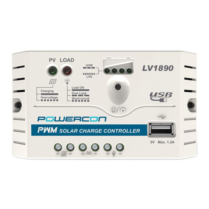 Solar Panel Charge Controller has a 3 Stage intelligent PWM charging: Bulk, boost/equalize, float, and is Protected from overcharging, over-discharging and overloading. Specifically it has automatic voltage detection, USB Output Port 5 Volt/1.2 amps, LED indicators.