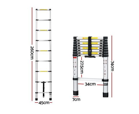 Giantz 2.6M Telescopic Ladder Aluminium Extension Extendable Steps Adjustable Height