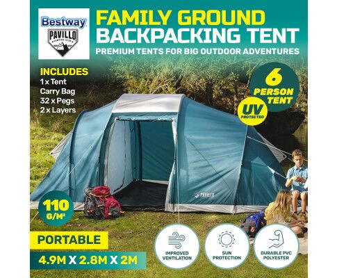 Tent 6 Person Bestway® to Relax and enjoy the outdoors with this 6 person tent. Ideal for outdoor adventures, this tent is made of high quality materials and is simple to set up.